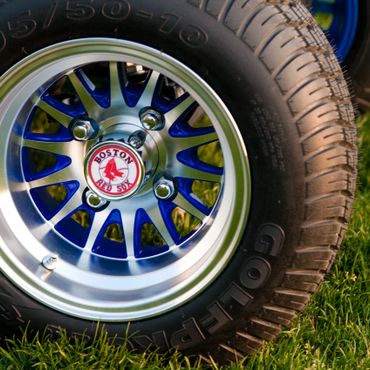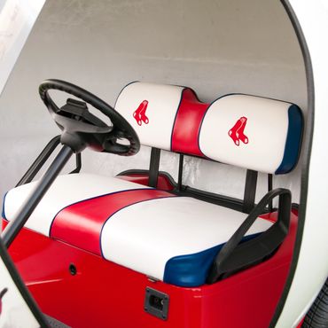 Custom golf cart modified for Red Sox–themed branding